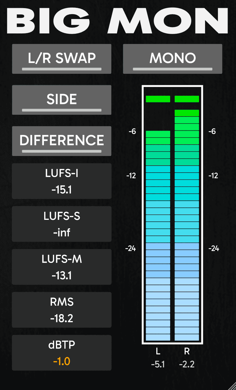 BIG MON is a professional monitoring and metering plugin for mixing, mastering, and broadcast delivery. It provides EBU R128 loudness metering, true peak detection, and stereo monitoring tools such as mono, side, difference, and channel swap modes, making it a practical solution for producers and engineers who want more reliable technical control inside their workflow.