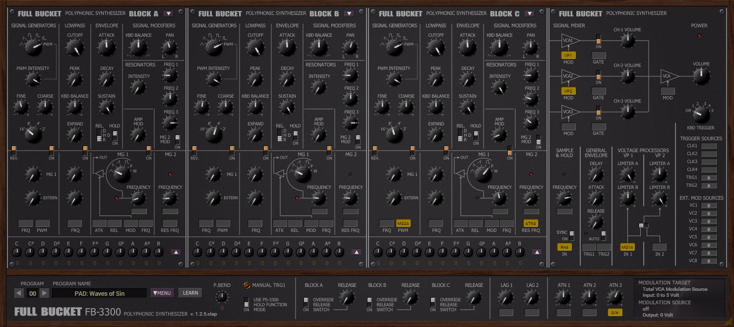 The Full Bucket FB-3300 is a gift for producers and synth lovers who want to explore the rich world of semi-modular analog synthesis without spending a dime. It’s a faithful recreation of one of the most iconic and rare synthesizers in history, with all the modern features needed to fit into your workflow.