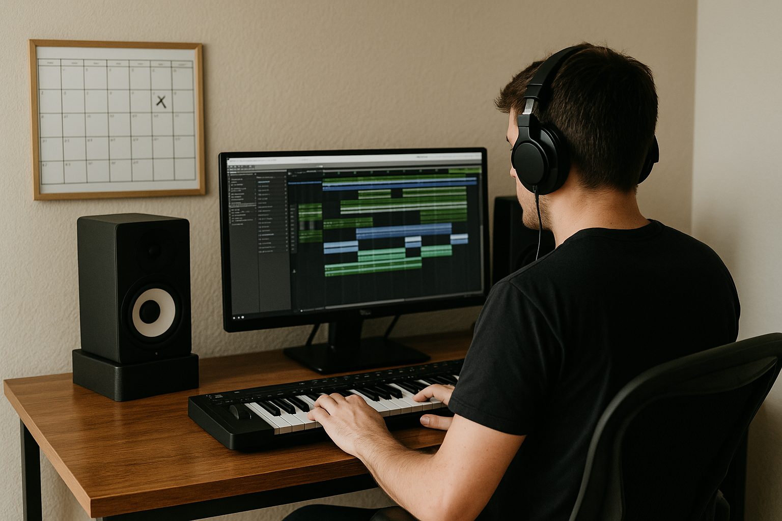 Tuesday is your zone-in day. Block out distractions and dive deep into composition or sound design. Treat it like sacred studio time — no emails, no socials. If you work a day job, carve out even one focused hour in the evening to make progress.