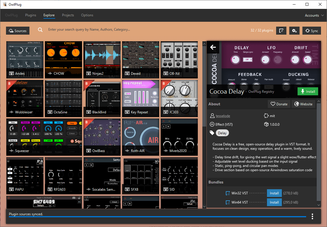 Beyond scanning what is already installed, OwlPlug can also install plugins through registries. That adds a discovery layer to the experience and makes the software feel less like a static catalog and more like a living plugin environment for curious producers.